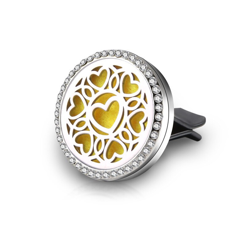 Szivecskék - Aromaterápiás autóillatosító CZ kristályokkal- rozsdamentes acél aroma diffúzor
