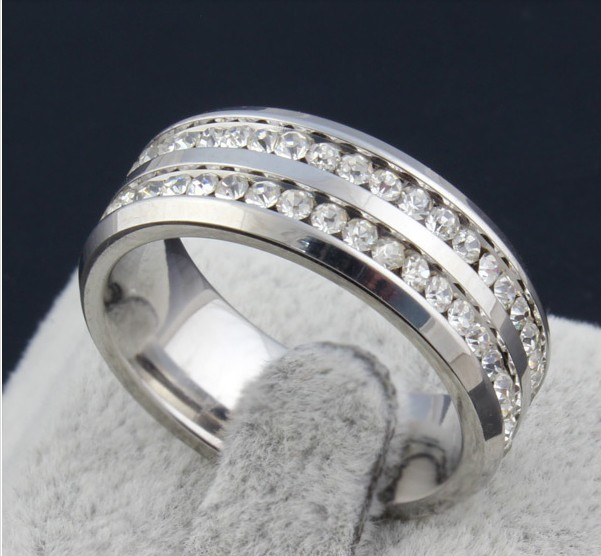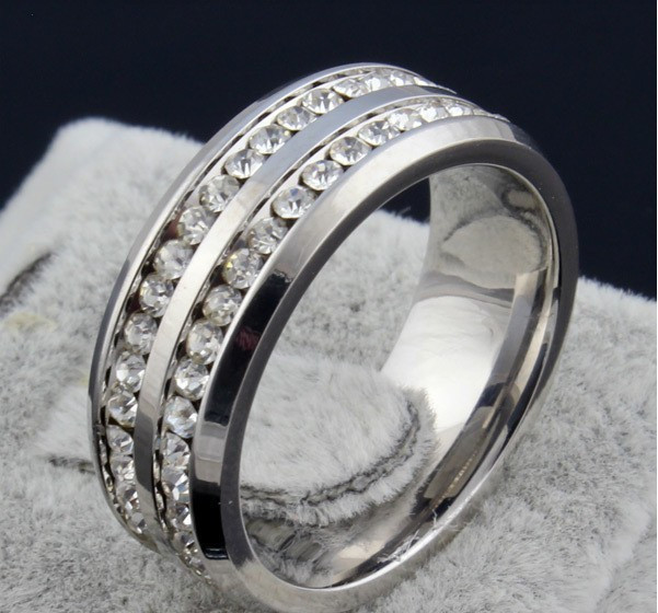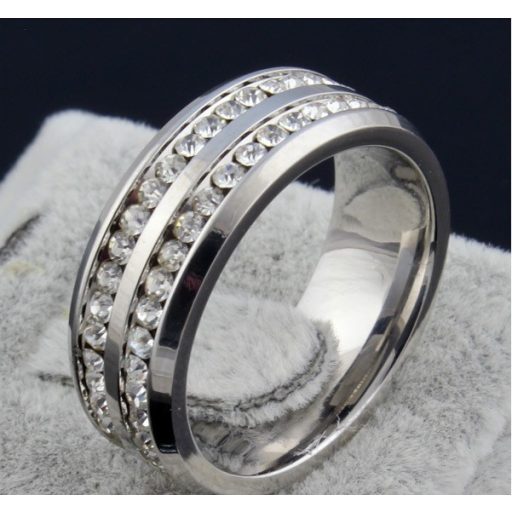 Titániumus 316L acél gyűrű 2 soros kristállyal