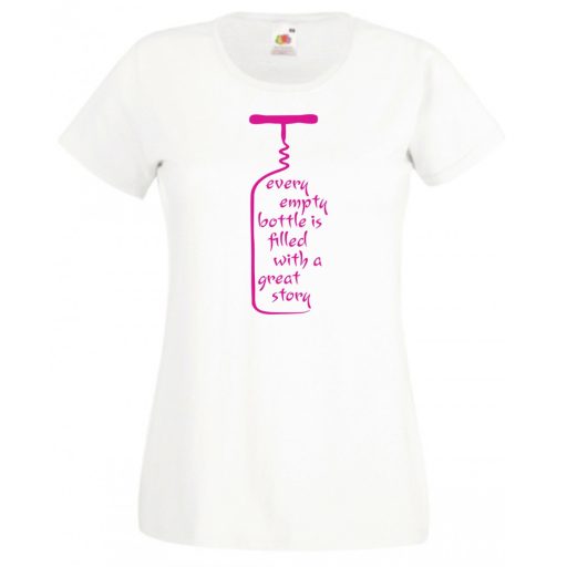 Vicces, bor kedvelőknek, every empty bottle is filled with a great story, minden üres üveg nagyszerű történetekkel van megtöltve női rövid ujjú póló