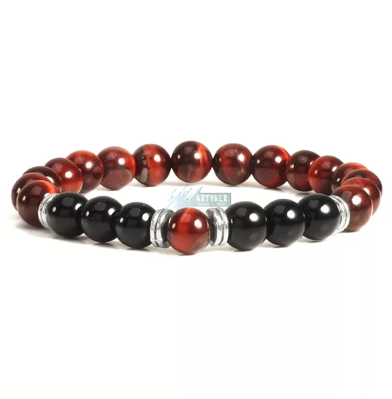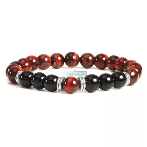 Vörös tigrisszem - Ónix ezüst köztes ásvány karkötő