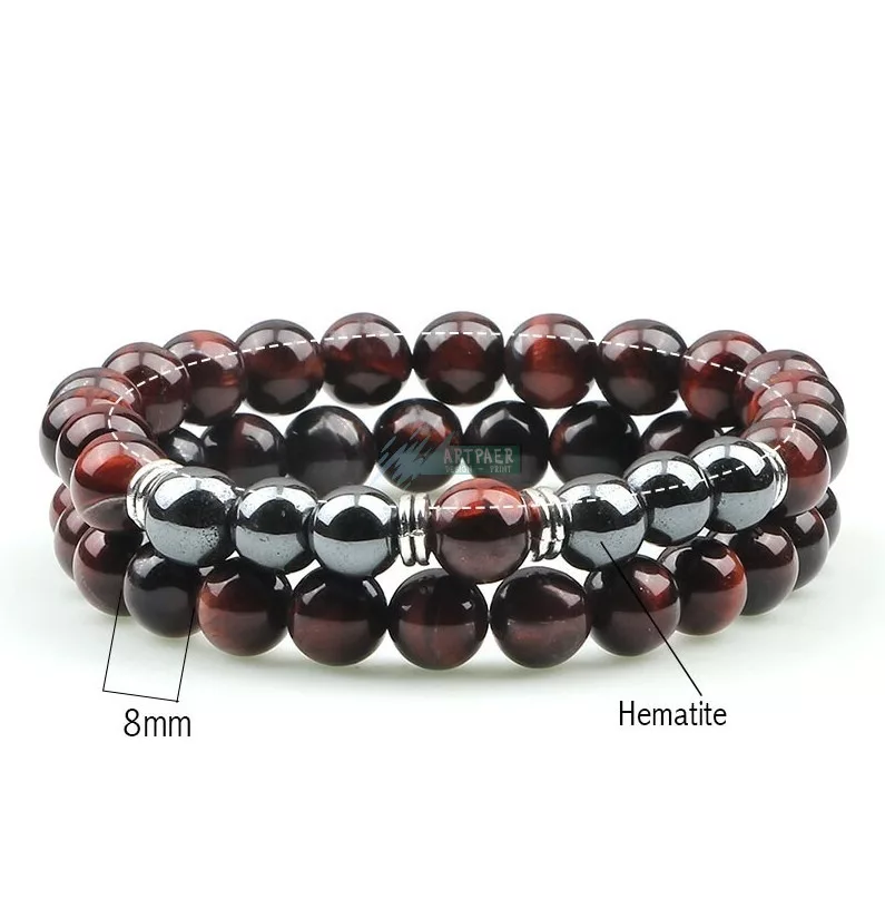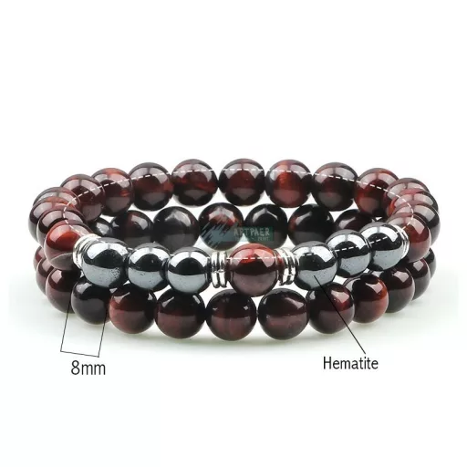 Vörös tigrisszem - Ónix ezüst köztes ásvány páros karkötő