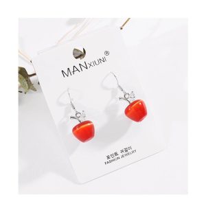 Alma alakú, piros színű macskaszem fülbevaló (1 pár)