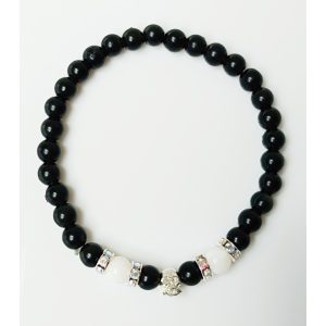 Ásvány karkötő ónix és tejkvarc - ezüst színű koponya és cirkóniumos köztes
