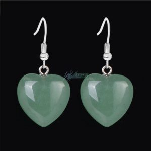 Szív alakú aventurin medál - ezüstözött nemesacél akasztóval - ásvány fülbevaló (1 pár)