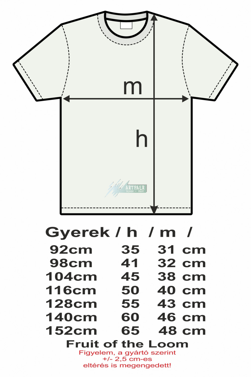 Minden pólót a kiválasztott paramétereknek (szín, méret, fazon) megfelelően egyedileg, perszonalizáltan készítünk, ezért kérjük a méretet a megadott cm-ek alapján gondosan kiválasztani