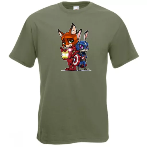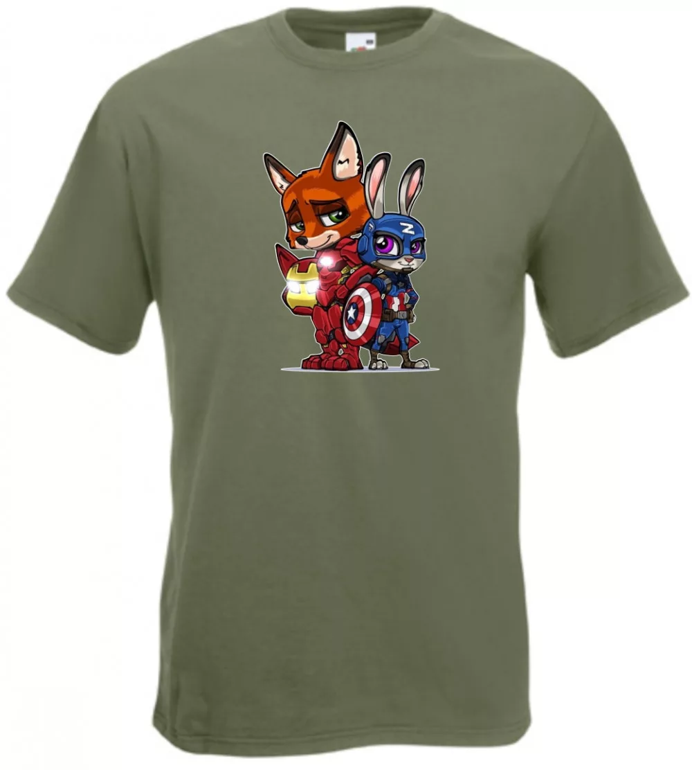 Humor kicsi Hősök Róka és a nyúl (Vasember és Amerika kapitány) férfi rövid ujjú póló