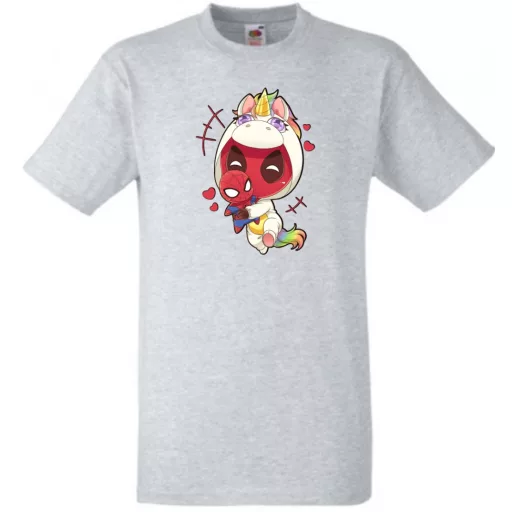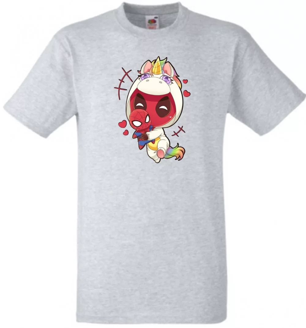 Humor - Kicsi Hősök - Deadpool Unikornis jelmezben pókember babával férfi rövid ujjú póló