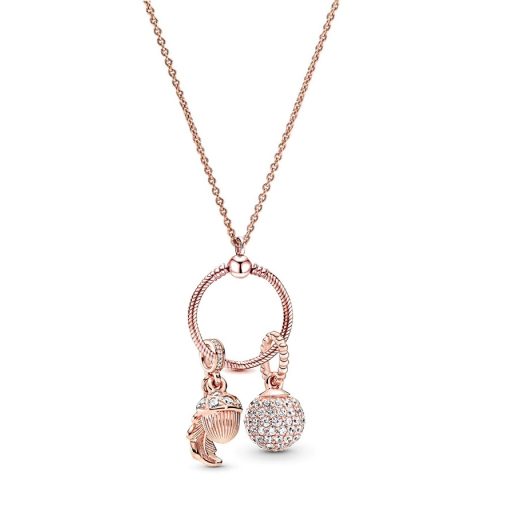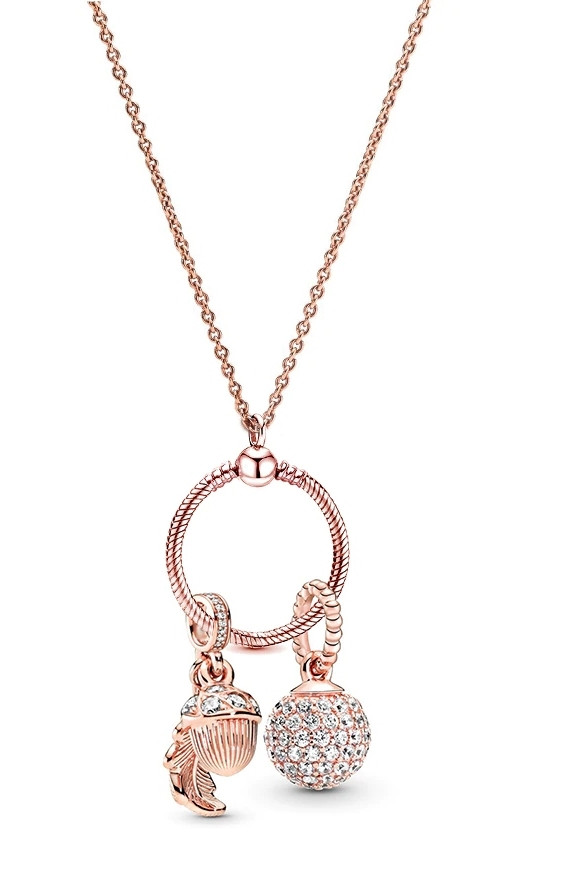 Rózsa aranyozott nyaklánc pandora stílusú, kristály charm-os medállal