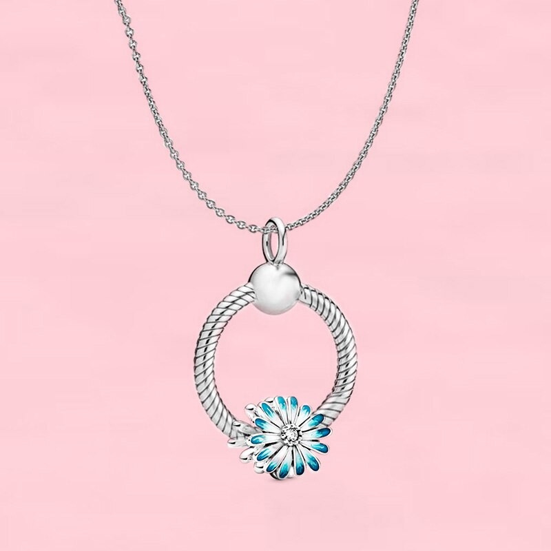 Ezüstözött nyaklánc pandora stílusú, virág, charm-os medállal