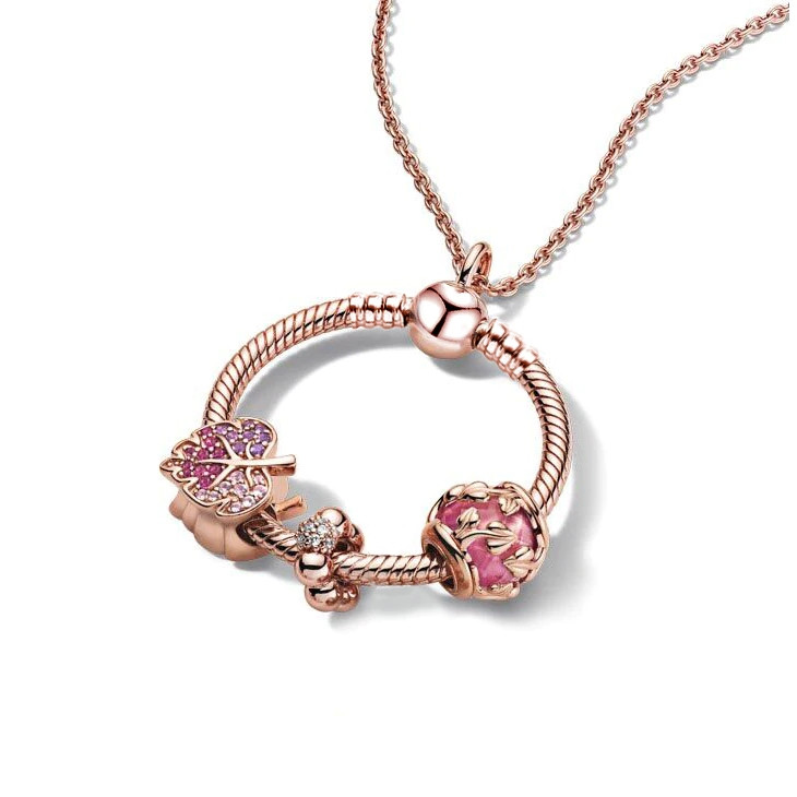 Ajándék, Charm, Kristály, Moments, Női ajándék, Nyaklánc, O medál, Pandora stílus, Rózsaaranyozott