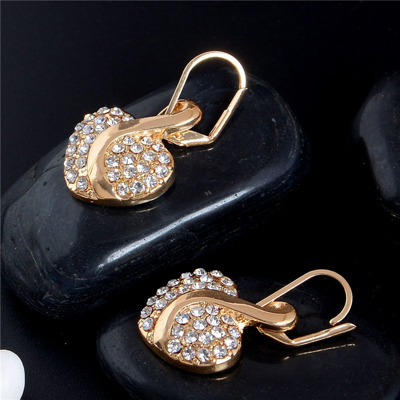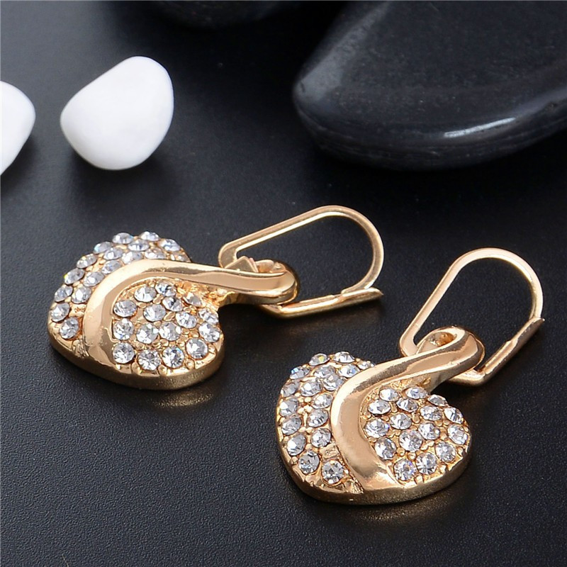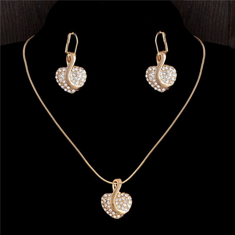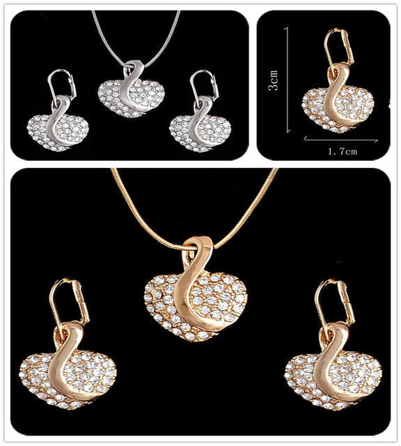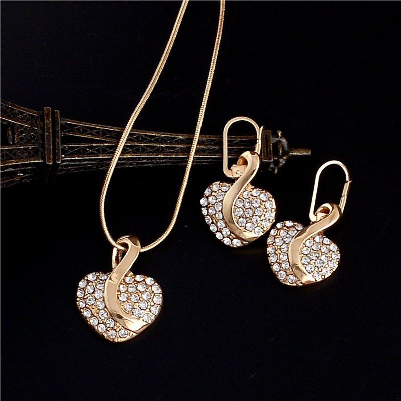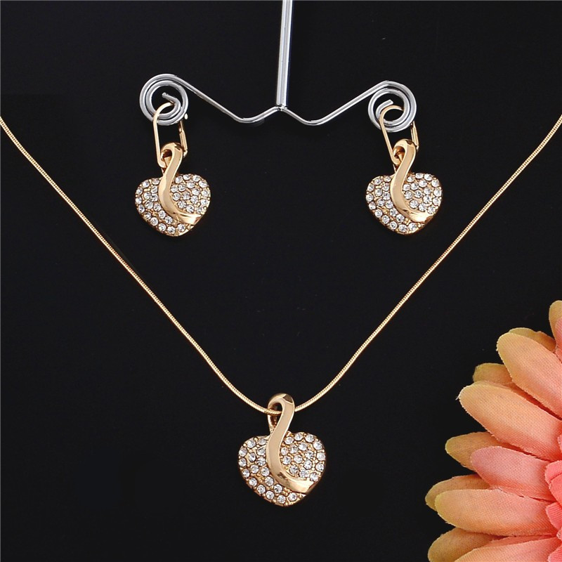 Gold filled nyaklánc, fülbevaló apró kristályokkal díszítve, szívecske formában._x000D_