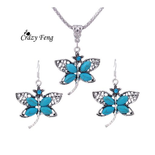 Antikolt, Ezüstözött, Fülbevaló, Nyaklánc, Pillangó, Szett, Szív, Türkiz
