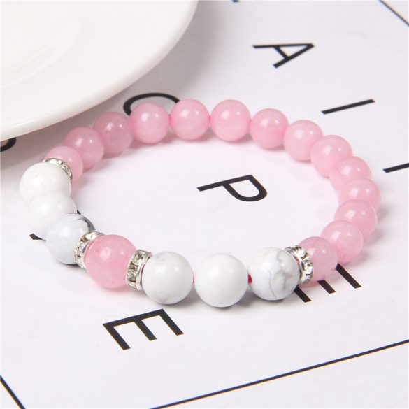 Ásvány karkötő rózsakvarc és howlit - cirkónium kristályos ezüst színű köztes